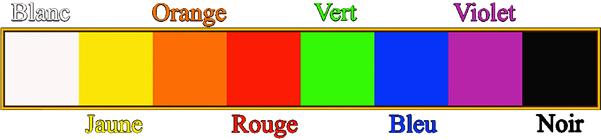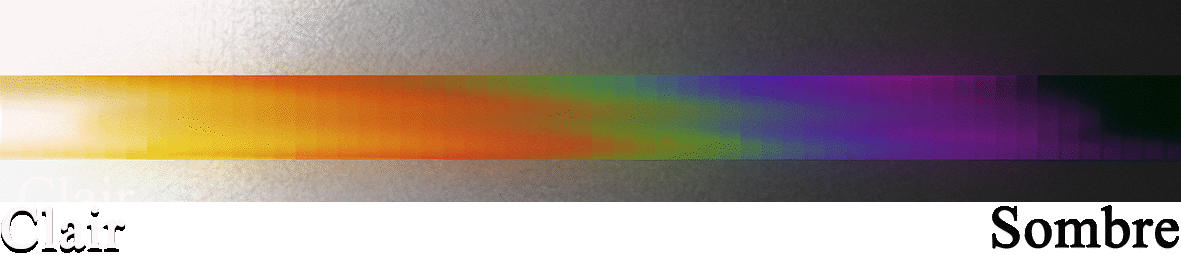 - La principale est que les couleurs sont classées suivant un axe de clarté qui va du blanc au noir. Le jaune étant considéré comme la couleur la plus lumineuse (la plus proche du blanc) et le bleu le plus proche du noir. Les couleurs sont alors pensées et classées en fonction d'un critère achromatique, celui de la clarté.